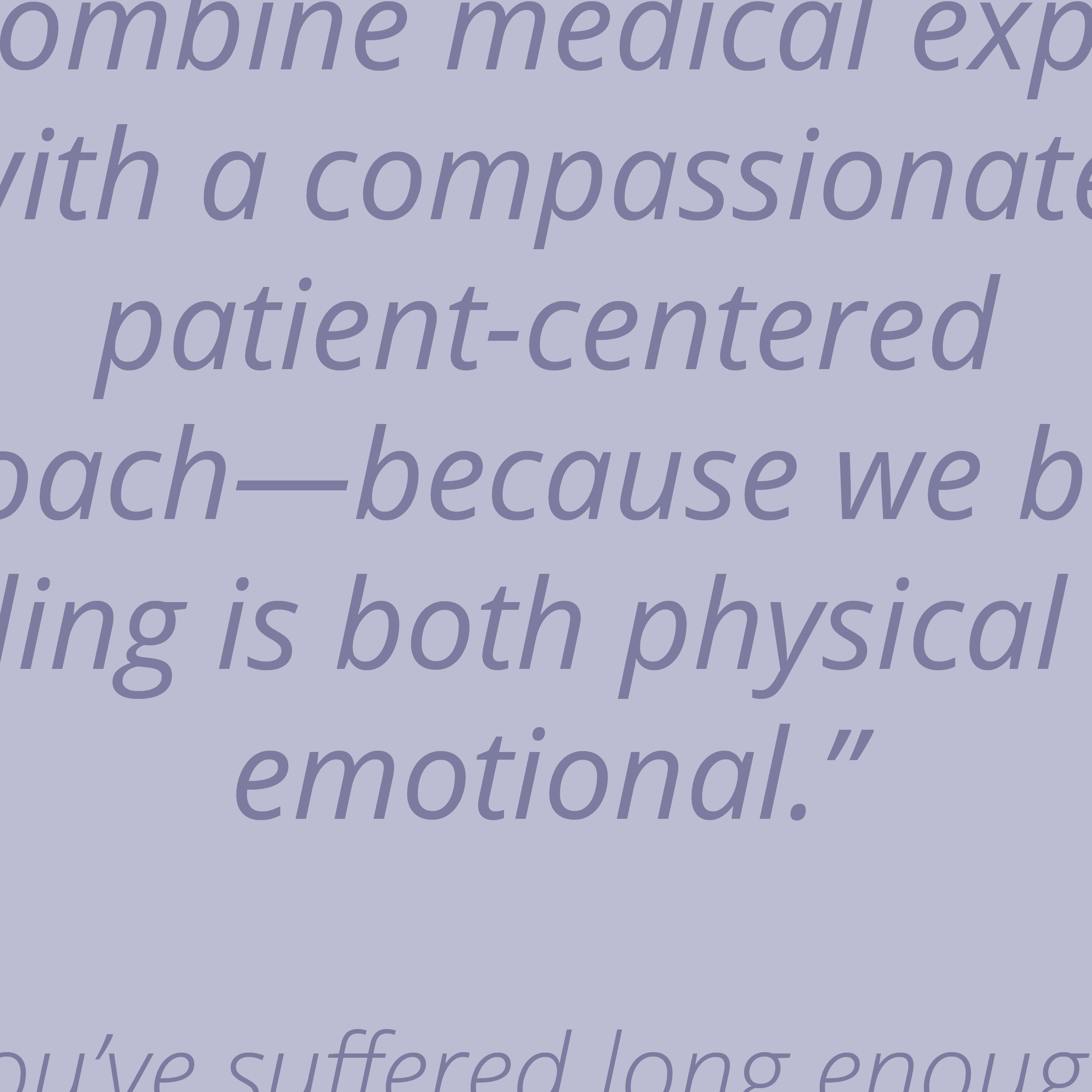 We combine medical expertise with a compassionate, patient-centered approach—because we believe healing is both physical and emotional.